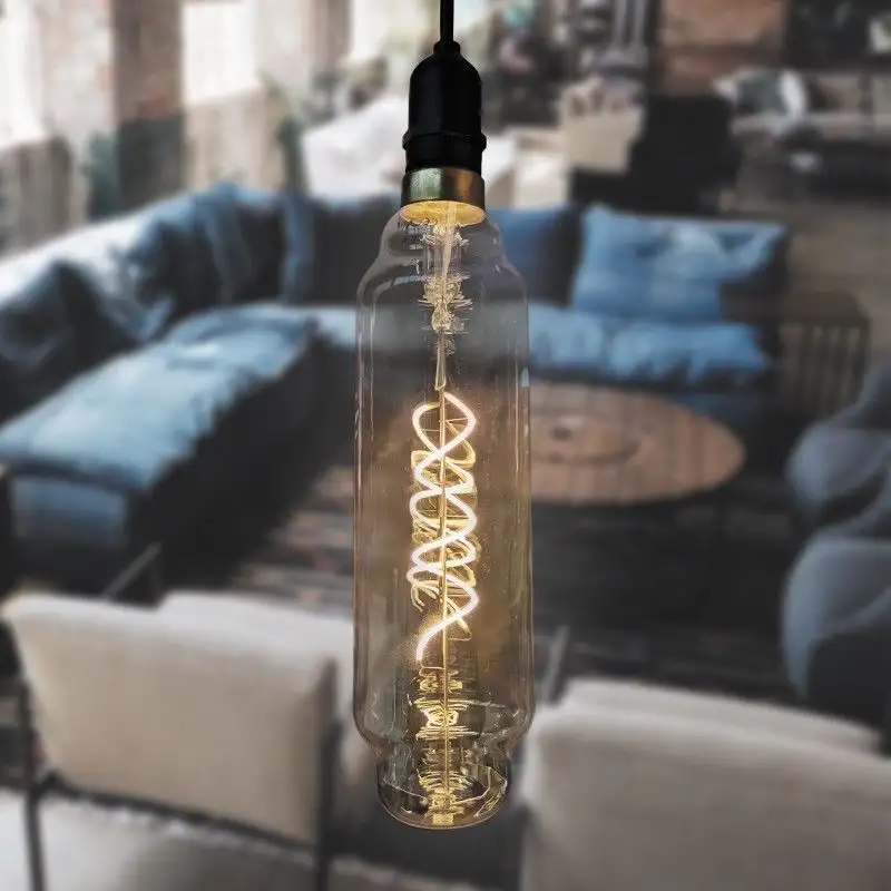 Effet surprenant grâce au mix de la technologie LED et des ampoules à filament d'époque. Sa teinte ambrée et son corps type cylindre se mixent parfaitement pour votre intérieur sur une suspension ou pour une installation en extérieur, dans une guirlande étanche !