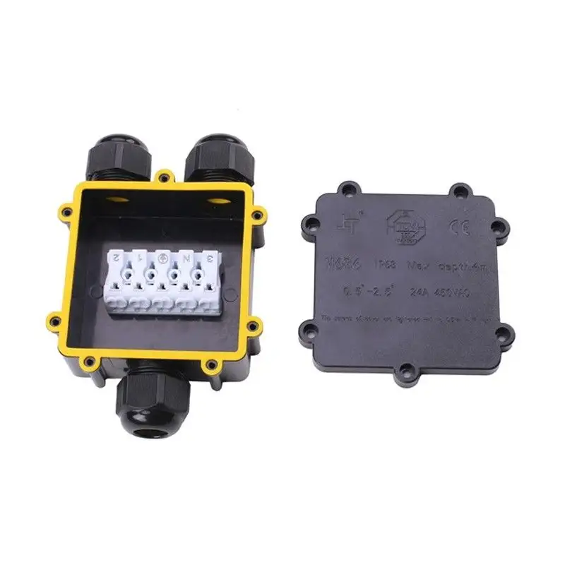 Cette boîte de connexion étanche va vous permettre de réaliser très facilement des jonctions et dérivations de câble électrique en extérieur (IP68) afin de connecter des lignes électriques en milieu humide.