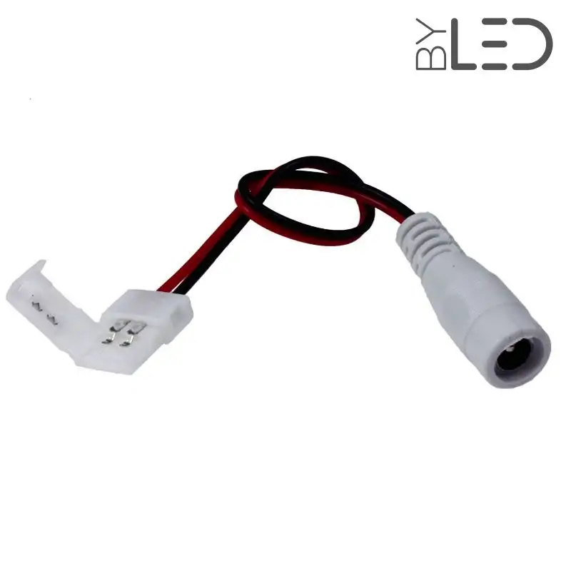 Connecteur pour relier un ruban LED monochrome 3528 de 8mm (60LED/m) à un connecteur jack mâle d'une source d'alimentation.