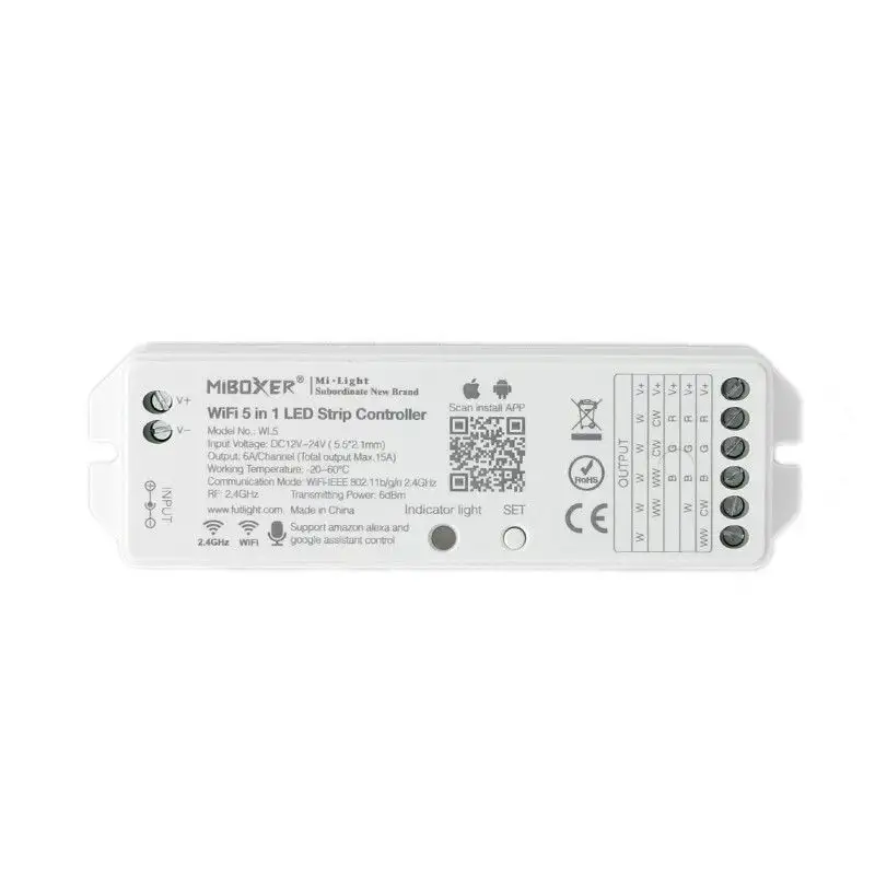 Fonctionnalités de ce contrôleur : allumer, éteindre | Modifier la couleur | Augmenter, diminuer l'intensité lumineuse | Choisir des programmes d'animation.