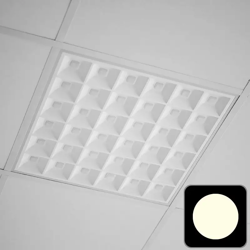 Les panneaux multi LED en blanc lumière du jour offrent une véritable avancée technologique comparé aux anciennes installations de type néons fluo ou à des produits LED "bas de gamme" ne respectant pas les nouvelles normes en vigueur. Les 36 diffuseurs microprismatiques permettent sur ces dalles une diffusion parfaitement homogène de la lumière, mettant de côté tout risque d'éblouissement (UGR < 19). Les panneaux LED ByLED proposent un Indice de rendu des couleurs (IRC) de 80 à 83 et sont équipés de transformateurs Lifud ® limitant le clignotement.