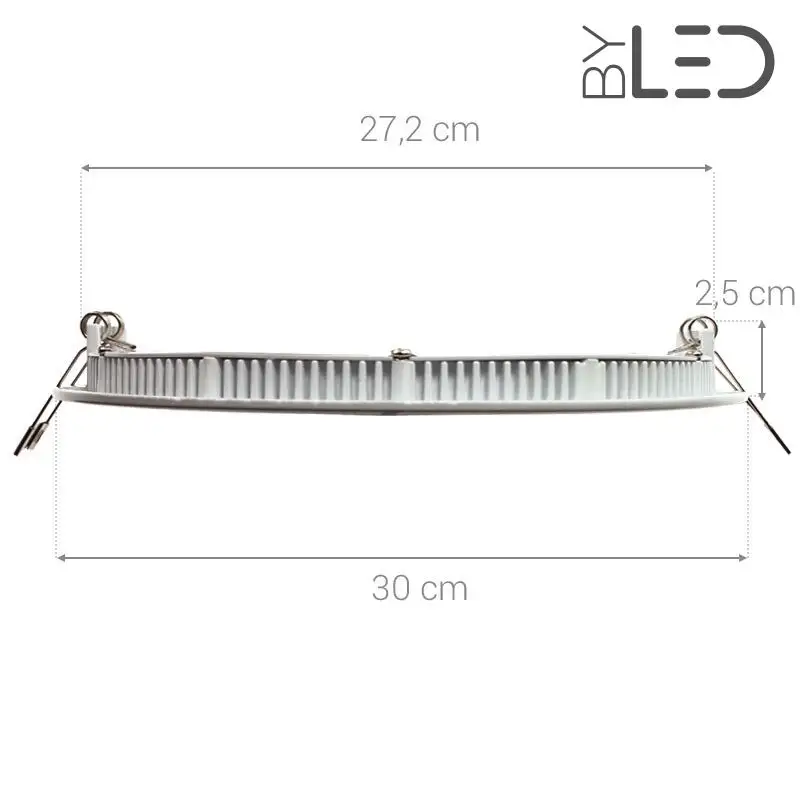 Les dalles LED Sunny s'encastrent facilement dans un faux-plafond, même étroit, grâce à une faible profondeur de 2,5cm et une dissipation de la chaleur ingénieuse. Le convertisseur est fourni avec la dalle, permettant ainsi une installation simplifiée.
