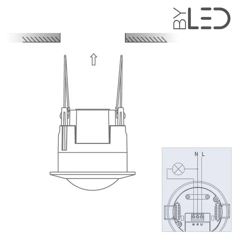 Il est conçu pour être encastré dans un plafond (diamètre de perçage du trou: 67 mm) et se fixera avec ses clips de maintien comme un spot encastrable.