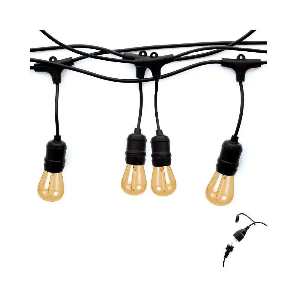 Effet garanti grâce au mix de la technologie LED et des ampoules à filament d'époque et nos guirlandes dédiées. Surprenant vos amis, vos clients, votre famille, et réaliser de superbes ambiance très facilement : La guirlande se branche directement sur une prise 230V !