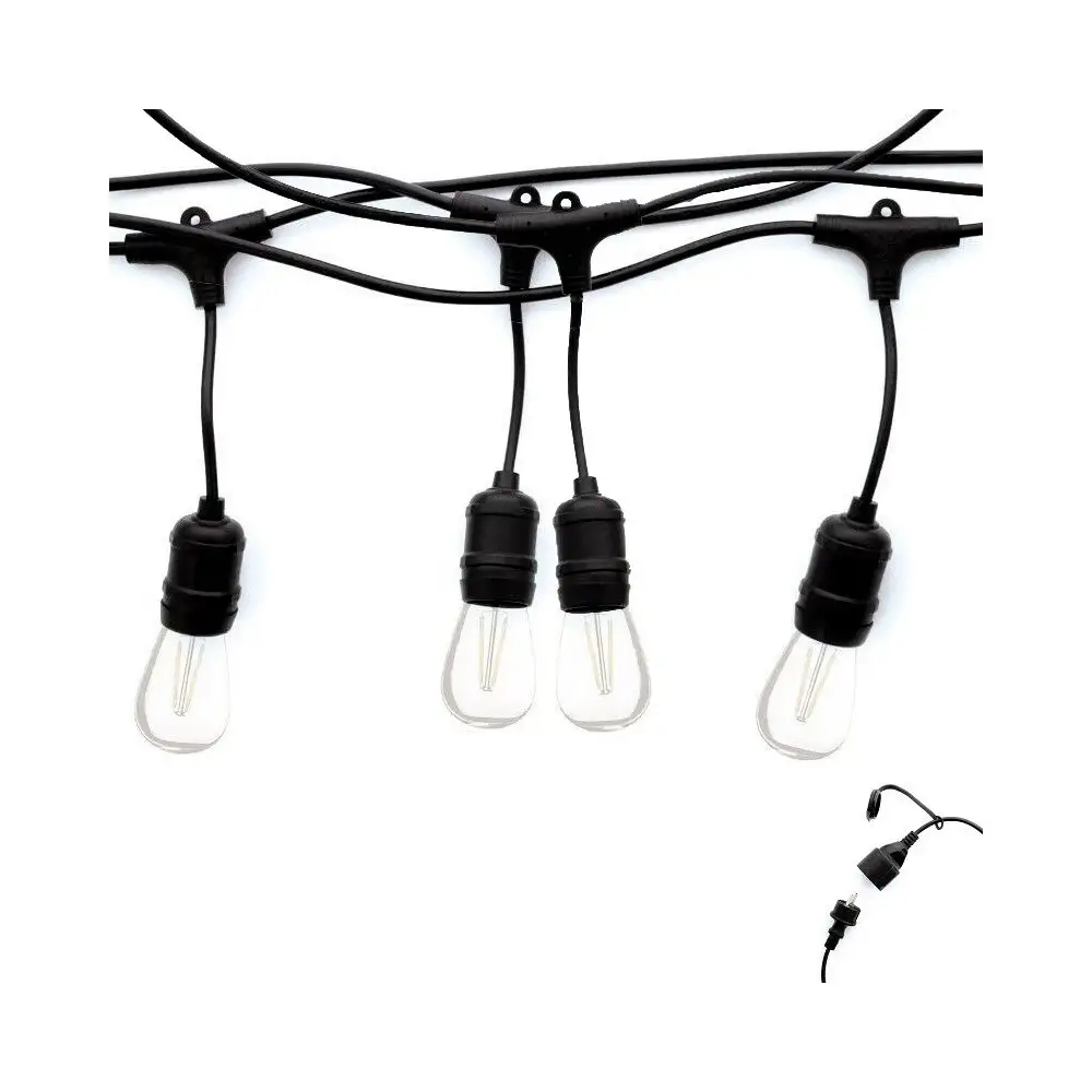 Vous pouvez allonger ces guirlandes jusqu'à 200 mètres et 500W grâce à un montage en cascade ! Les guirlandes guinguettes ByLED possèdent un système d'accrocheau dessus de chaque douille, cela permet une attache facile et rapide. Attention, afin d'assurer l'étanchéité de la guirlande en extérieur, la prise Femelle (IP44) doit être positionnée au dessus de la fiche Mâle afin que l'écoulement de la pluie ne puisse pénétrer dans la prise.