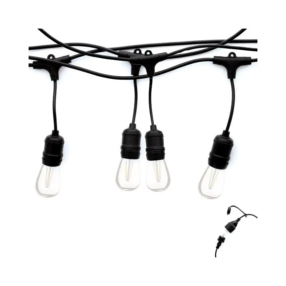 Effet garanti grâce au mix de la technologie LED des ampoules au style filament d'époque et nos guirlandes dédiées. Surprenez vos amis, vos clients, votre famille, et réalisez de superbes ambiances très facilement : La guirlande se branche directement sur une prise 230V !