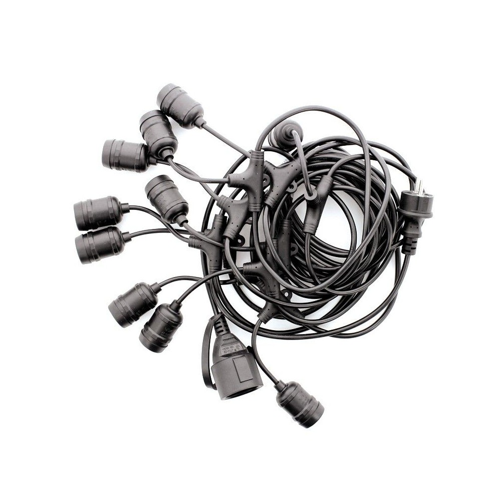 Personnalisez votre luminaire à volonté en ajoutant d'autres guirlandes dans la continuité de la première, comme une rallonge. La puissance maximum admissible est de 500 Watts. Afin d'assurer l'étanchéité de l'ensemble, la prise Femelle (IP44) doit être positionnée au dessus de la fiche Mâle afin que l'écoulement de la pluie ne puisse pénétrer dans la prise.