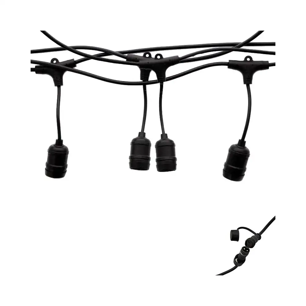 Nos guirlandes LED IP65 (protégées contre les intempéries) ont l'avantage de pouvoir s'accrocher très facilement sur de nombreuses surfaces grâce aux attaches spéciales au dessus de chaque douille. Personnalisez votre éclairage à volonté en ajoutant d'autres guirlandes de 5 mètres dans la continuité de la première, comme une rallonge.