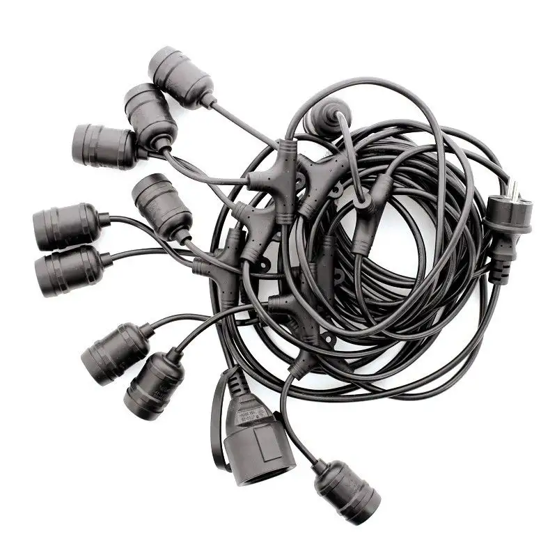Personnalisez votre luminaire à volonté en ajoutant d'autres guirlandes dans la continuité de la première, comme une rallonge. La puissance maximum admissible est de 500 Watts. Nos guirlandes guiguettes fonctionnent avec des ampoules LED traditionnelles à culot E27 permettant un remplacement rapide de votre source lumineuse.