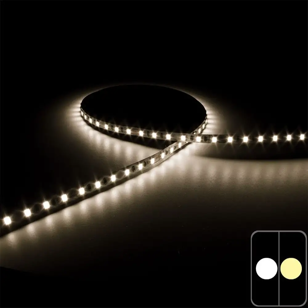 De par son intensité lumineuse moyenne, le bandeau ByLED 2835E 9,6W/m, avec 120 LED/mètre, s'intègre parfaitement dans un placard, un dressing ou pour l'éclairage d'un plan de travail. Vous bénéficiez ainsi d'un éclairage adapté avec un rendu esthétique et très moderne. Pour lisser encore plus la diffusion de la lumière et obtenir un effet néon, nous vous conseillons d'intégrer votre ruban dans un profilé pour ruban LED au diffuseur givré.