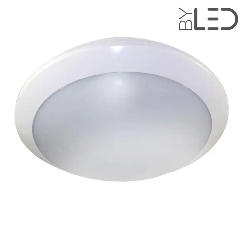 Le plafonnier à LED Galbe est étanche (IP65). Ainsi, il peut être installé à l'extérieur ou dans les pièces humides. Il est également protégé contre les chocs importants (IK09).