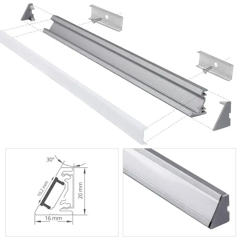 Ce profilé LED se décline en trois longueurs (1, 2 ou 2,95 mètres) et en deux diffuseurs au choix (transparent ou givré). Le diffuseur transparent laisse intact le rendu lumineux du ruban quant au diffuseur givré, il atténue légèrement et répartit de manière homogène, l’intensité lumineuse, tout au long du profilé.