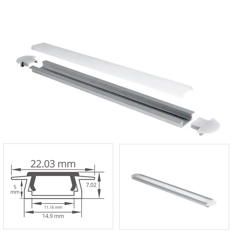 Son diffuseur résistant et givré permet de lisser la lumière sur l’ensemble du profilé, cachant ainsi les LED du ruban. Il se fixe par clipsage sur le profilé.