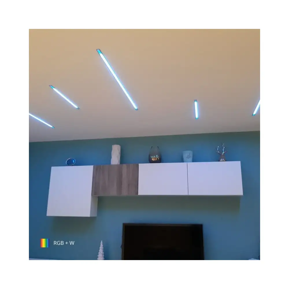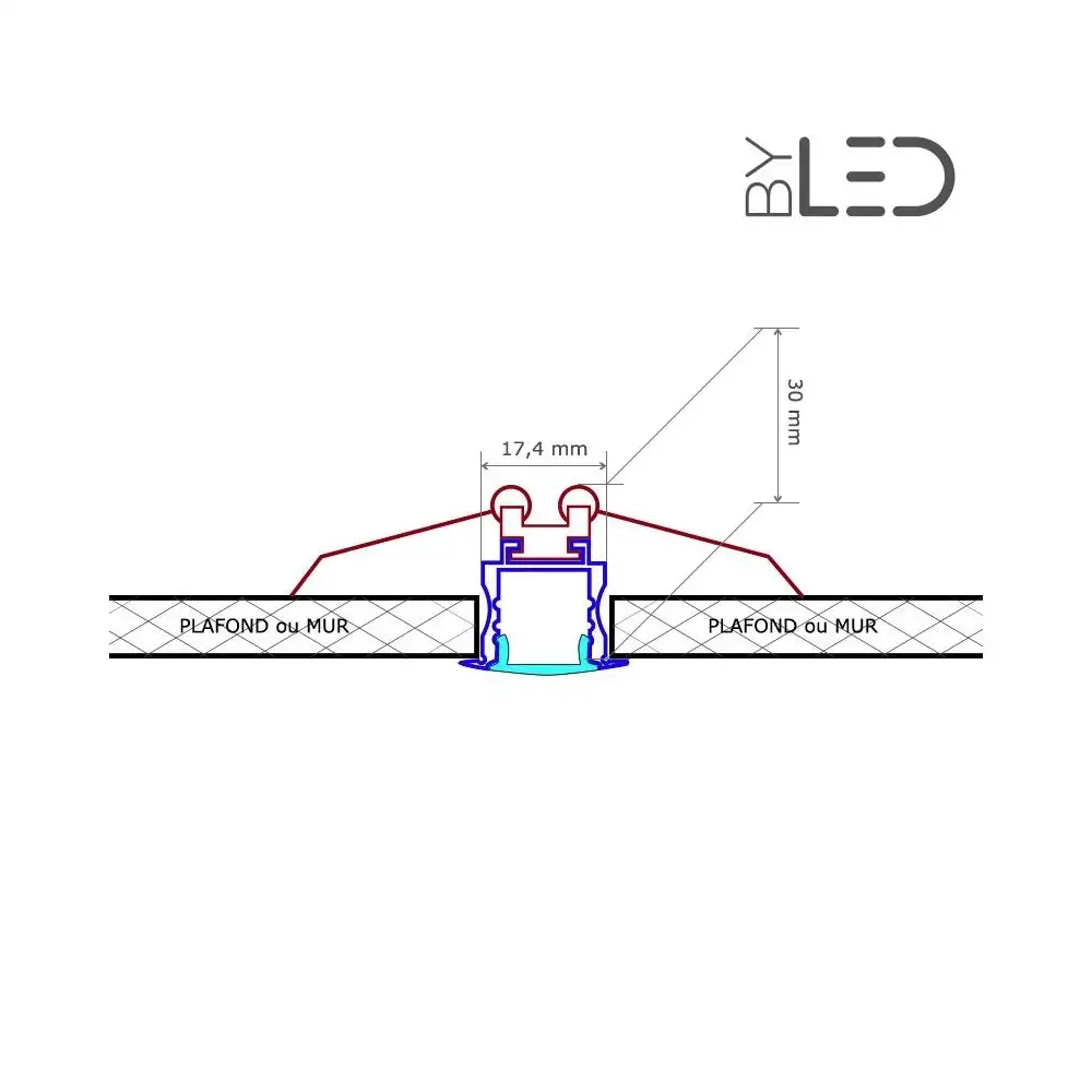 Ce profilé blanc est spécialement conçu pour s'encastrer dans des matériaux creux (type BA13, bois, etc.) dans les murs, plafonds, meubles, dressing, créant ainsi un chemin lumineux très moderne.