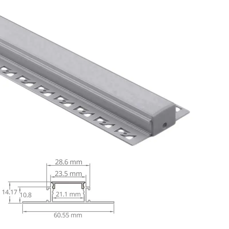 Ce profilé encastrable est également disponible en longueur de 1m, 2m et 2,9m (incluant 2 embouts de finition par mètre et un diffuseur givré de la bonne longueur).