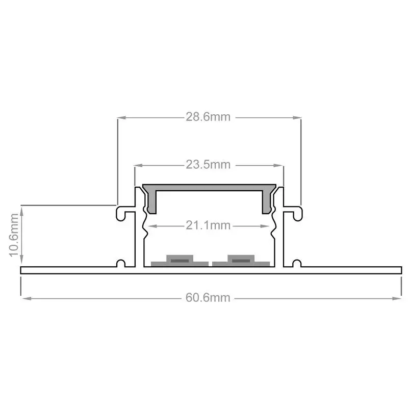 Ce modèle de profilé LED encastrable a la spécificité de pouvoir recevoir deux rubans LED, ou un ruban double dans la mesure où la largeur cumulée ne dépasse pas les 21mm. Ainsi, le rendu lumineux pourra être très puissant.