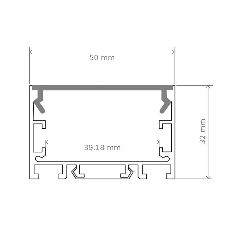 Ce profilé aluminium pour ruban LED se distingue par sa largeur qui lui permet d'accueillir jusqu'à 4 rubans simples ou 2 doubles rubans LED afin de réaliser un éclairage de forte puissance (jusqu'à 50 Watts par mètre).