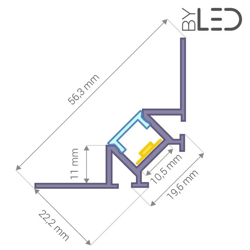 Ce profilé d'angle 90° en aluminium est fait pour cacher un ruban LED RGB, mono-couleur ou blanc (il se colle dans le fond du profilé, bande double face incluse sur tous nos rubans). La largeur d'accueil du ruban est 10 mm maximum.