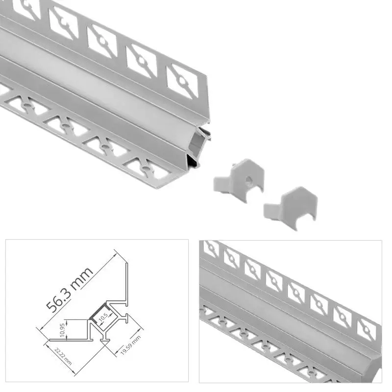 Grâce à ses bords à sceller et noyé dans de la colle à carrelage ou placo-plâtre (également faux plafond, cloison sèche…), ce profilé d’angle encastrable apportera une finition professionnelle ainsi qu’une touche de modernité à votre pièce.