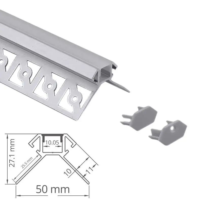 Lors de votre installation, ce profilé LED d’angle encastrable se fixera rapidement grâce à ses bords à sceller. Noyé dans de la colle à carrelage ou placo-plâtre (également faux plafond, cloison sèche…) il apportera finition et modernité à votre pièce.