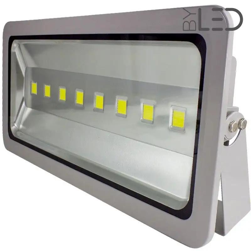 Ce modèle de projecteur LED est le plus puissant de sa gamme avec ses 400W, soit un équivalent halogène de 3600 watts. Sa forme rectangulaire permet d’intégrer 8 LED COB (Chip on Board), les unes à côté des autres, délivrant ainsi 38 000 lumens.