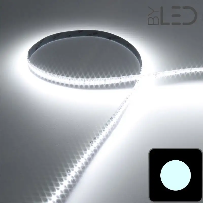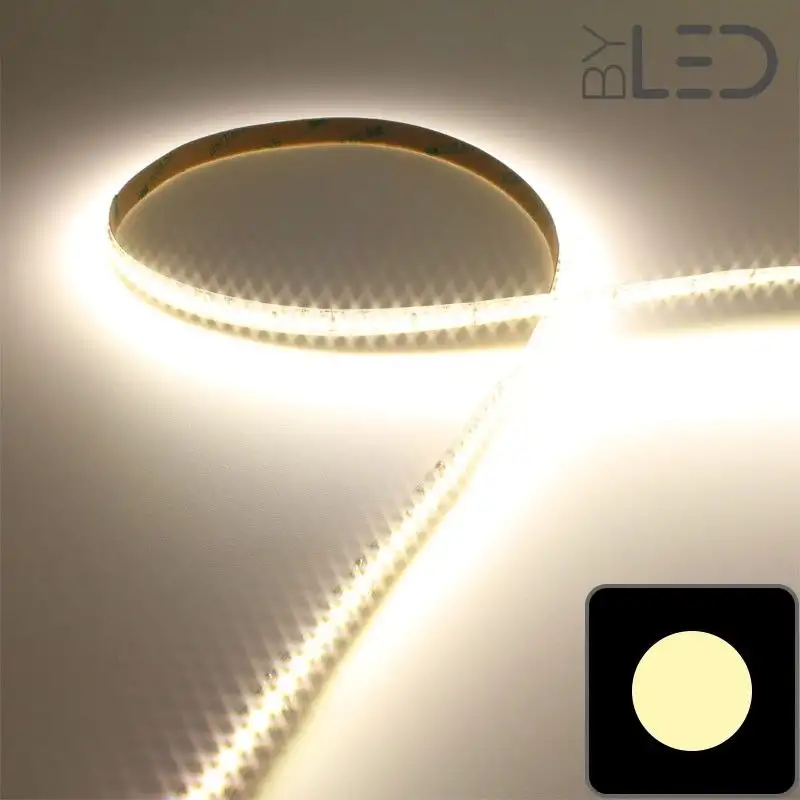 Avec ces 168 LED par mètre, la lumière est diffusée de manière linéaire, grâce au faible espace existant entre les LED. Pour lisser encore plus la diffusion de la lumière et obtenir un effet néon, nous vous conseillons d'intégrer votre ruban dans un profilé pour ruban LED au diffuseur givré.