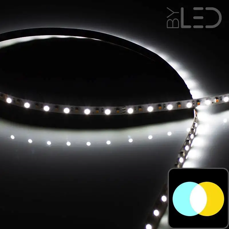 Vous souhaitez un ruban LED blanc qui s'adapte à votre humeur et à l'ambiance recherchée ? Optez pour ce modèle à deux circuits permettant une alternance de LED blanc chaud et blanc pur. Ainsi, grâce à un contrôleur et une télécommande vendue séparément, offrez-vous une infinité de températures de couleur, allant de 2600 K à 6000 K.