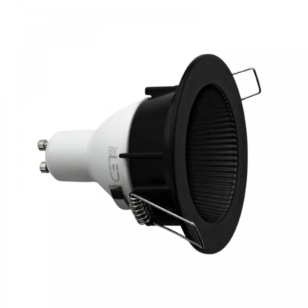 Nichée en profondeur pour éviter les éblouissements, le spot peut accueillir une source lumineuse de type GU10 ou de type Spark. Il convient de laisser un vide de 5 cm autour de l'ampoule LED afin d’optimiser la dissipation thermique de la source lumineuse.