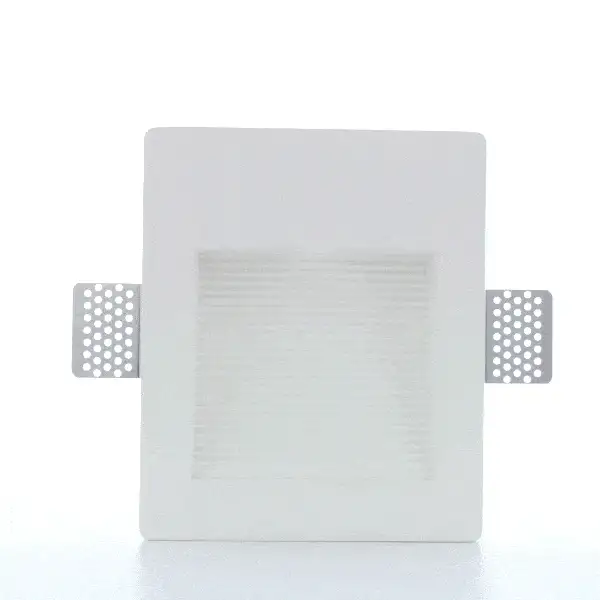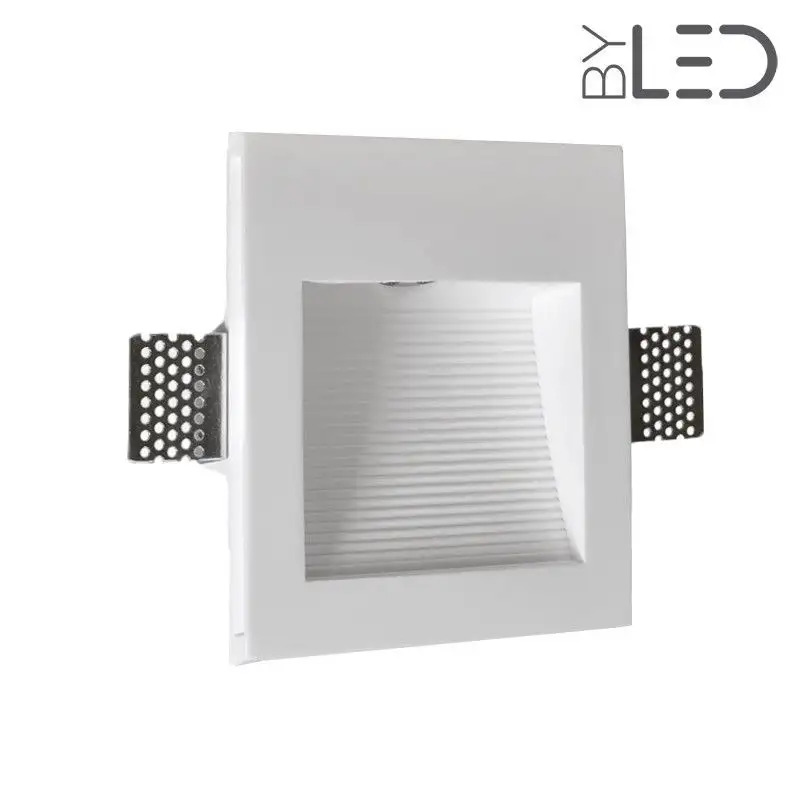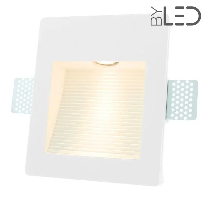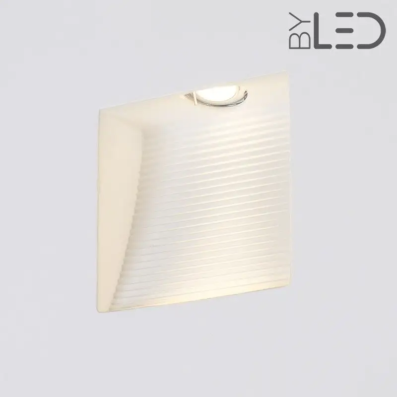 Ce modèle de spot LED en plâtre offre une forme carrée dans votre mur. Le fond du spot est incurvé et strié ce qui, une fois éclairé, ajoute du relief à votre mur support. Le spot peut être placé à environ 30 cm du sol.